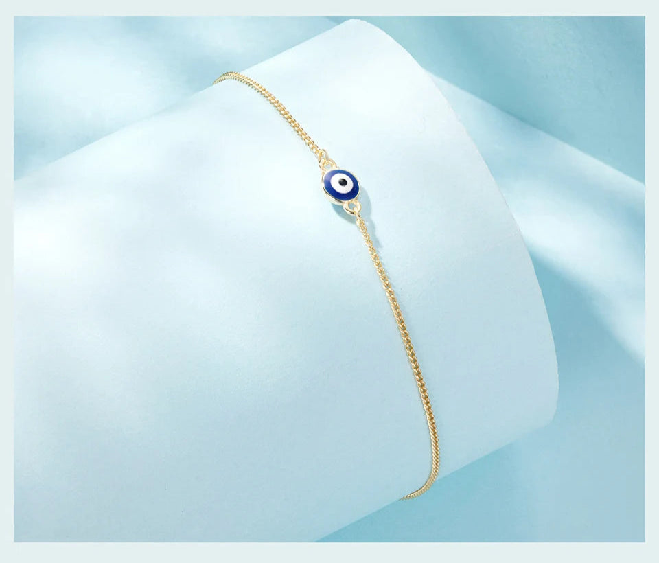 Elegant S925 Sterling Silver Blue Eye Anklet – Trendy Protection Jewelry