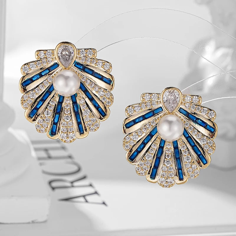 Luxury Shell Zircon Stud Earrings – Elegant Waterdrop Design